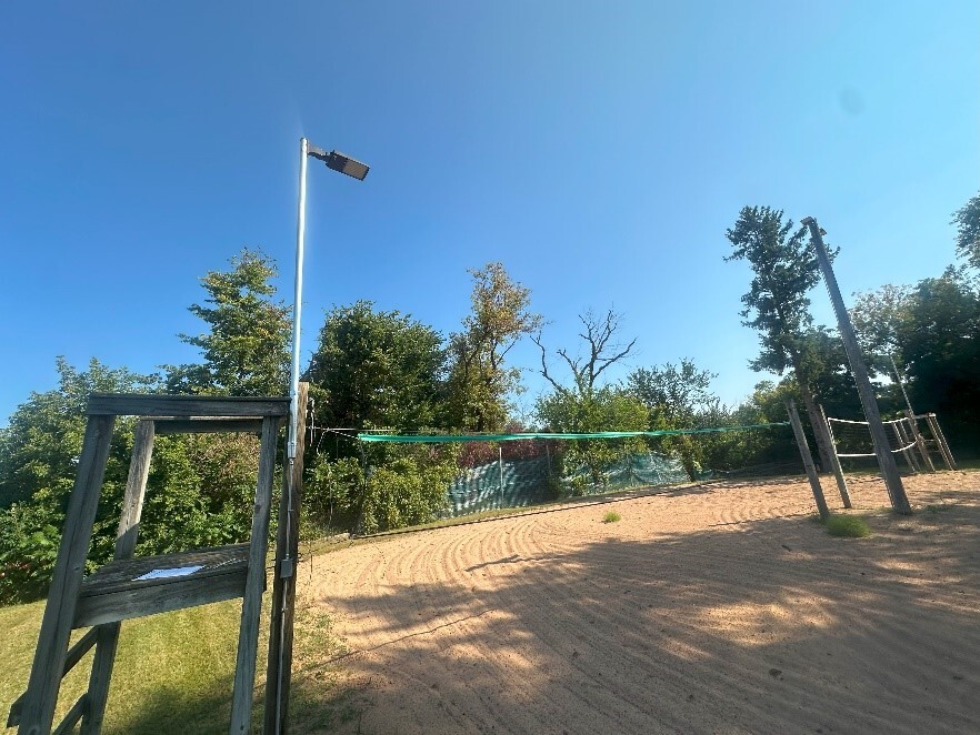 Jeremy Belile from BNH Lighting collaborated with Colin on a lighting arrangement for the parking lot and volleyball court. New exterior LED lighting provides higher-quality illumination for evening play on the volleyball court and enhanced security for pub customers in the parking lot. The system should deliver quality lighting and energy savings for 13 years.